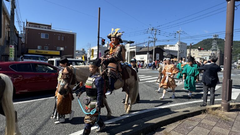 午前中には、華やかな流鏑馬行列が長崎街道を練り歩き、沿道の観客から大きな声援が送られました。
